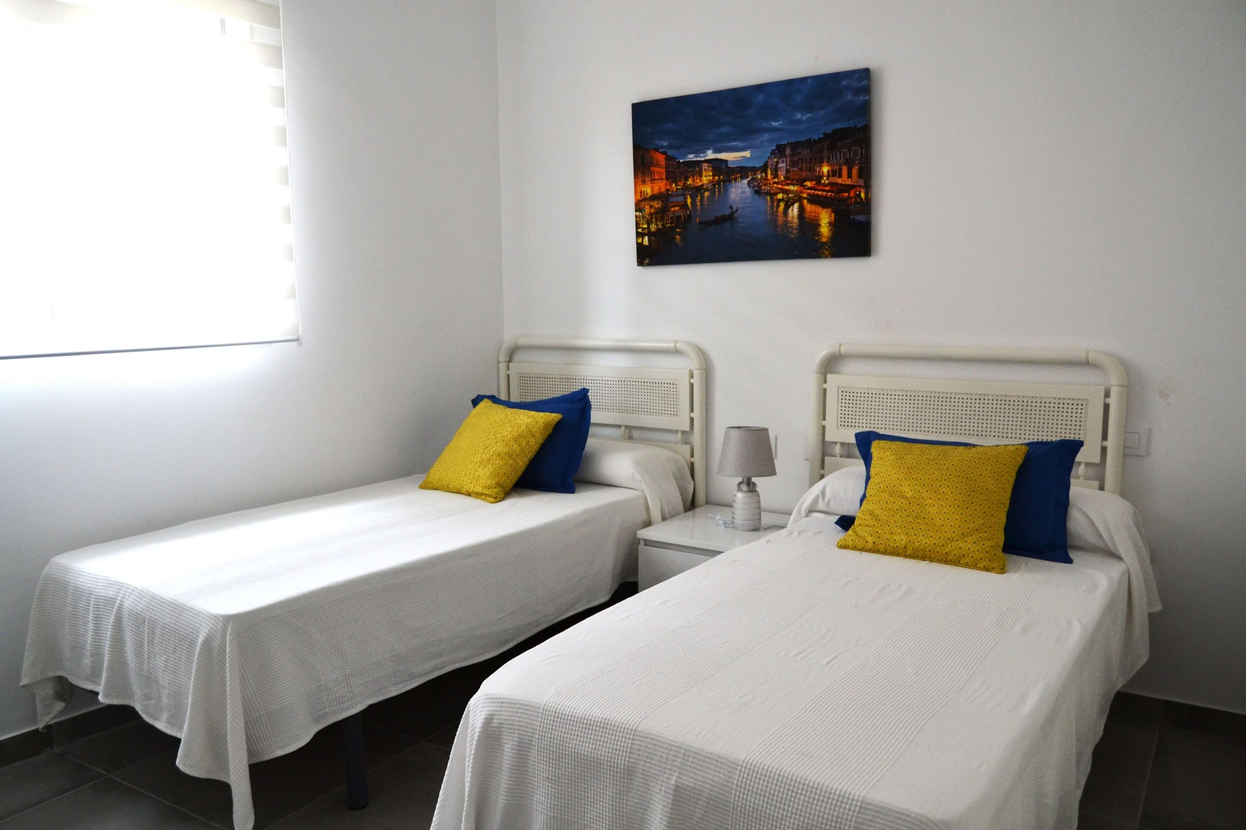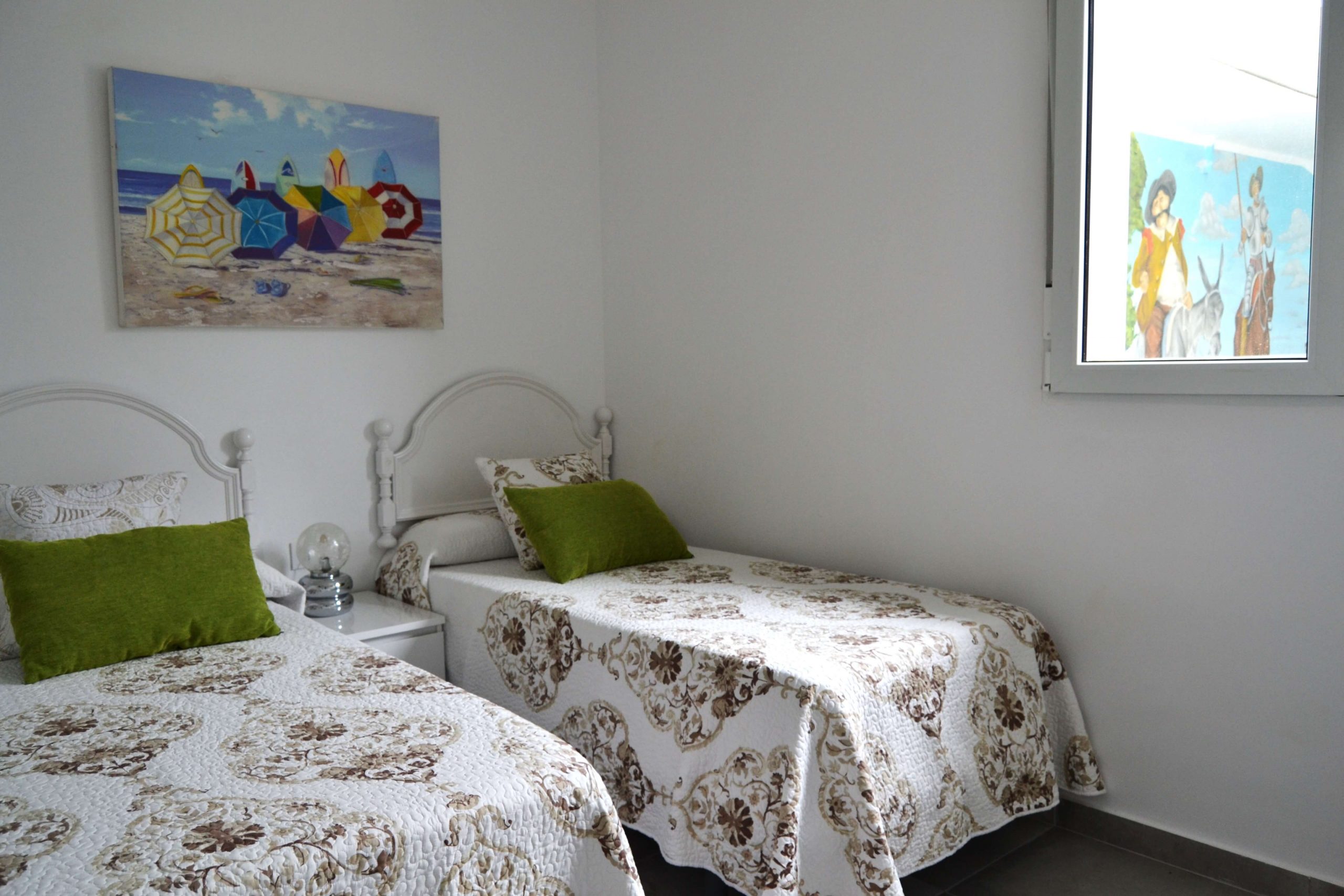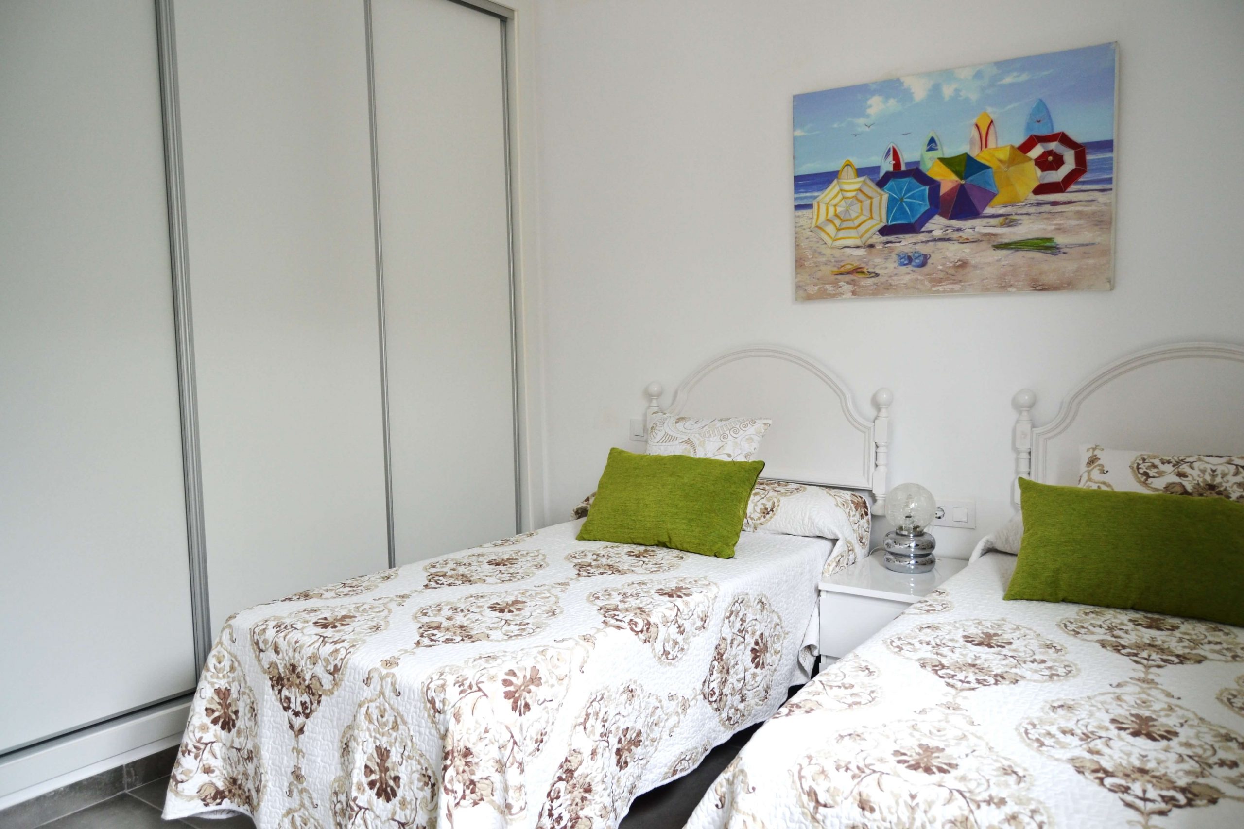 2 dormitorios con camas individuales La casa rural cuenta con 2 dormitorios con 2 camas individuales con los mejores complementos de descanso y amplios armarios. Reservar
