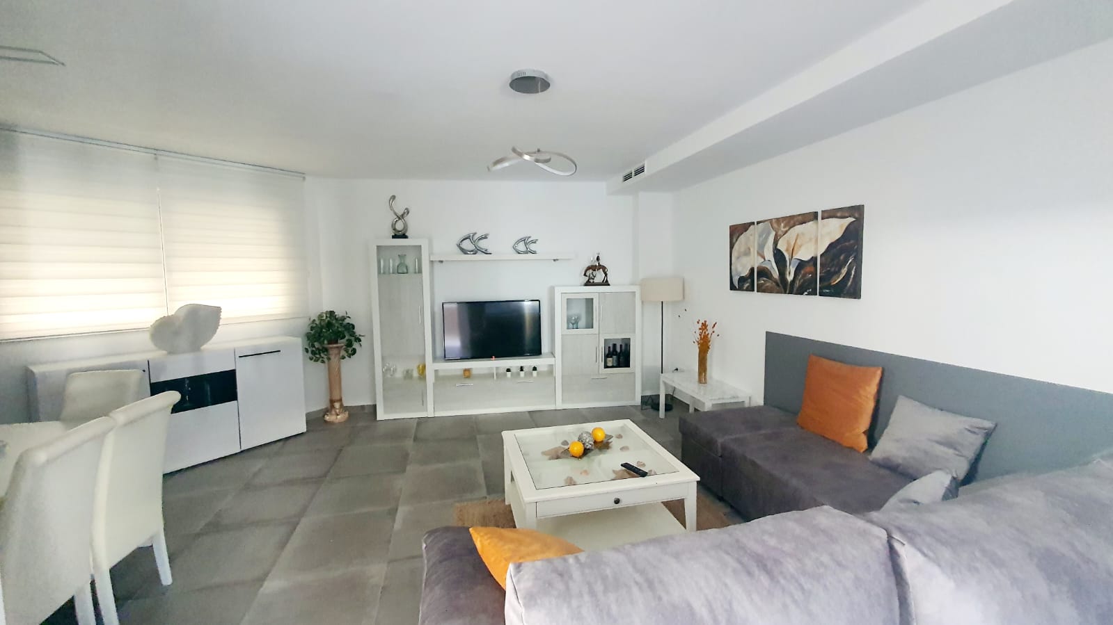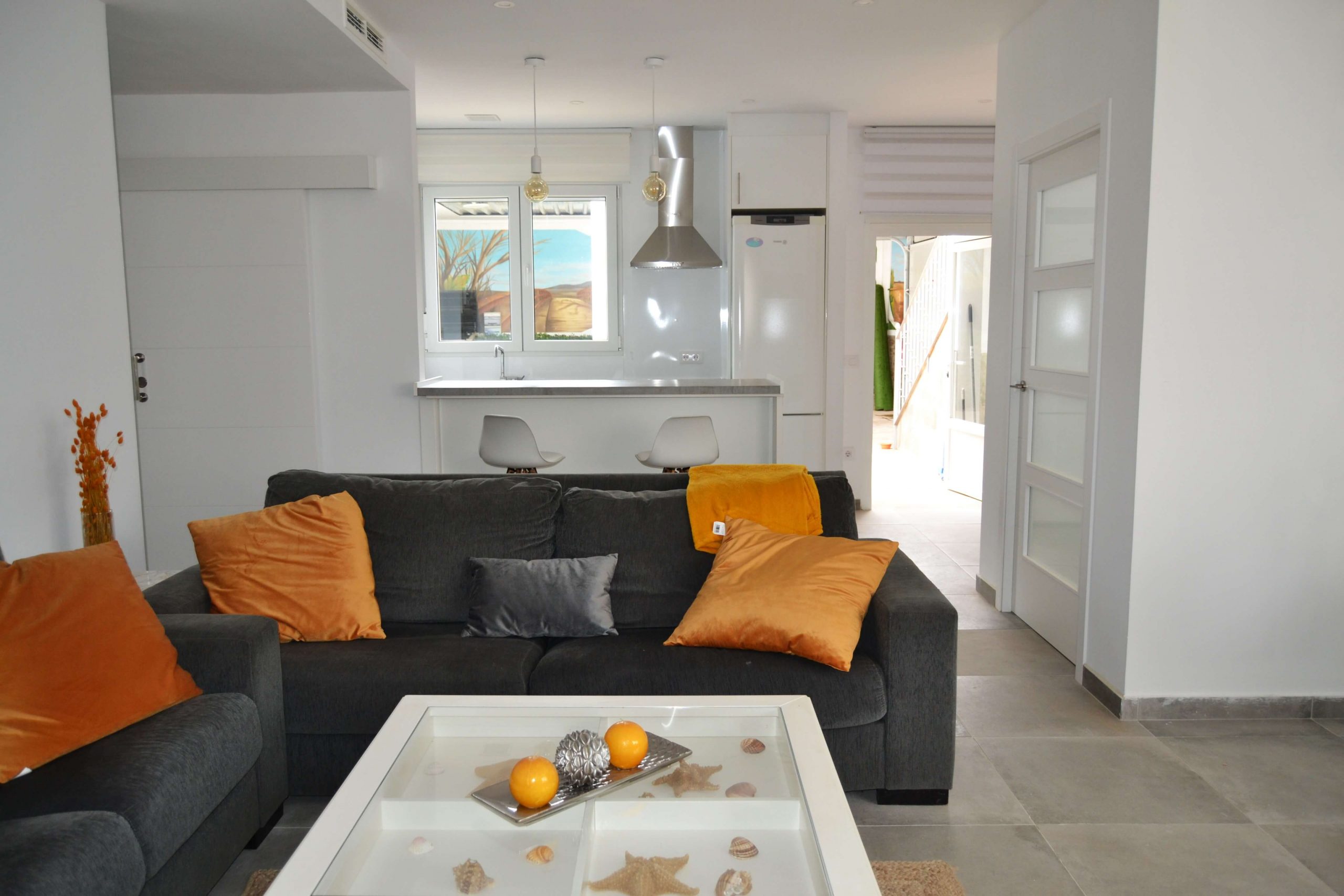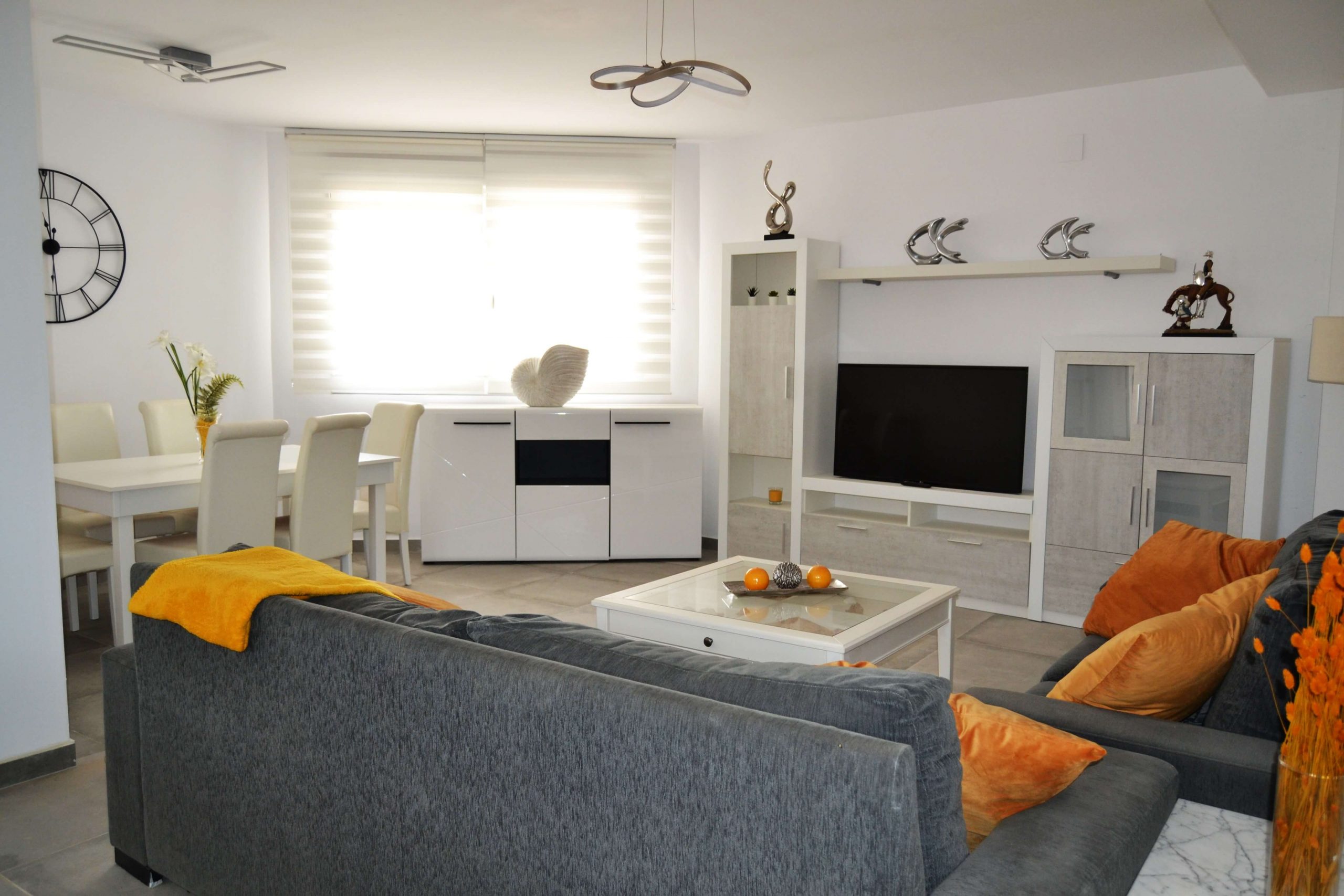 Punto de reunión de la casa rural, sofá cama muy amplio, TV de gran tamaño, mesa para realizar desayunos, comidas y cenas junto a la cocina americana. Un salón para disfrutar en cada momento del día con una decoración único y puntera.